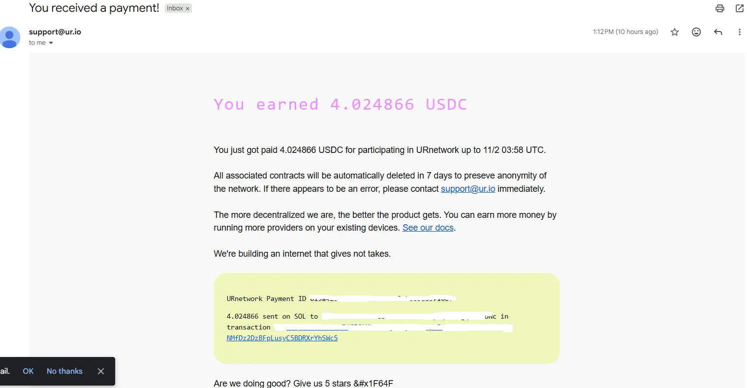 11.30 最近幾個禮拜都有收到USDC,雖然都少於1USDC,但至少有付錢;機掰雞在此就不附上貼圖了
